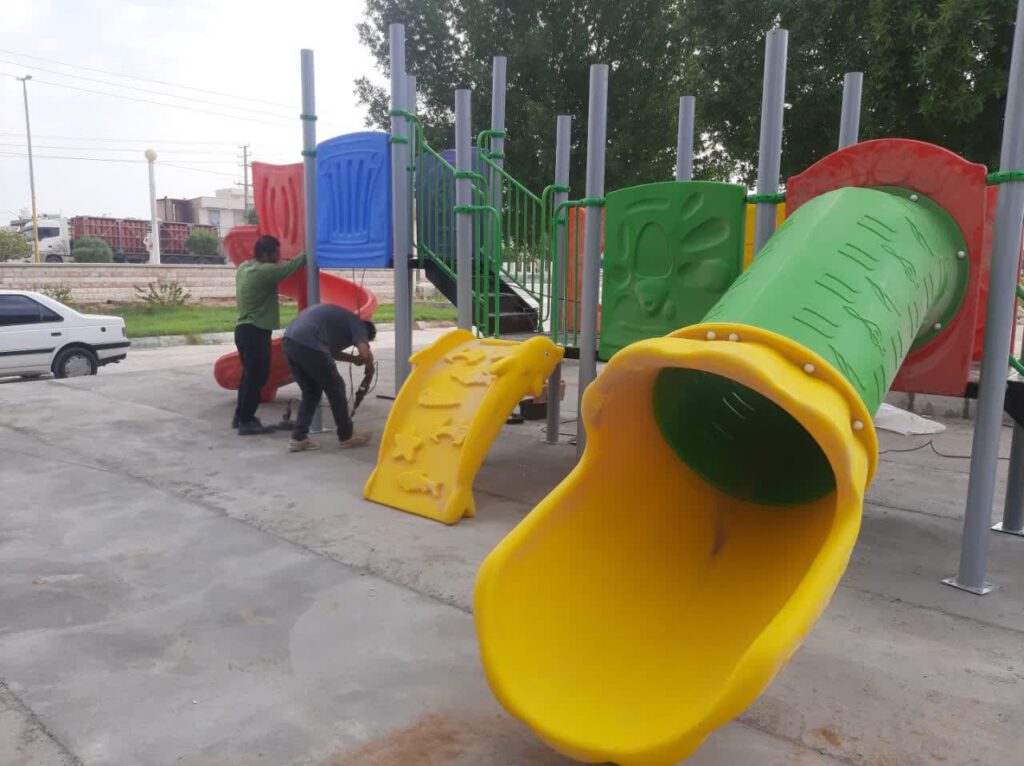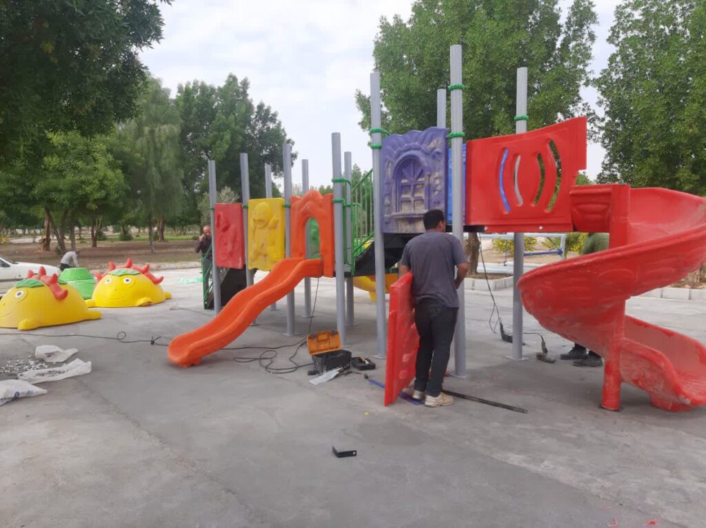 نصب مجموعه بازی جدید در پارک بزرگ شهر آب پخش+عکس