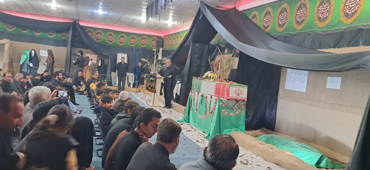 مراسم استقبال از شهید گمنام در حسینیه حضرت علی اکبر ع محله بهرام آباد شهر آب پخش برگزار شد.