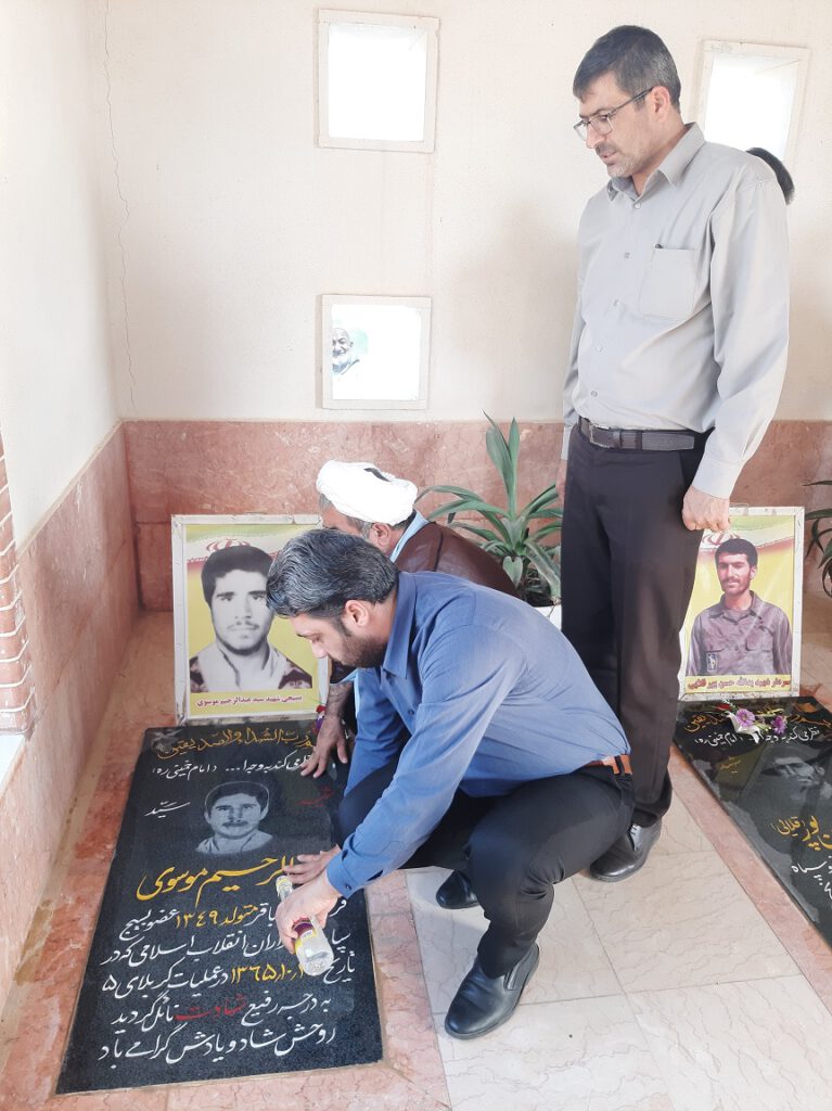 در آستانه هفته دفاع مقدس،گلزار مطهر شهدای محلات سه گانه شهر آب پخش با حضور مسئولان محلی غبارروبی و عطرافشانی شد.