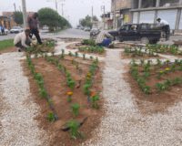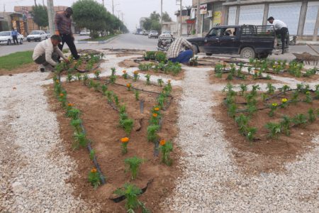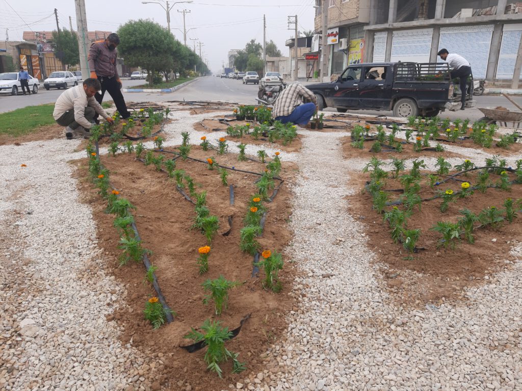 کاشت بیش از 2000 اصله نهال و بیش از 20 هزار بوته گلهای فصلی در یکماه گذشته در میادین و بلوارهای شهر آب پخش+تصاویر