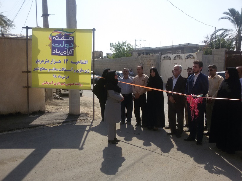 به گزارش پایگاه اطلاع رسانی شهرداری آب پخش،در چهارمین روز از هفته دولت و با حضور مسئولان،طرح های زیرسازی و آسفالت 14 هزار متر مربع از معابر شهر و دیوار سنتی ورودی شهر با اعتباری بالغ بر 8 میلیارد ریال افتتاح شد.