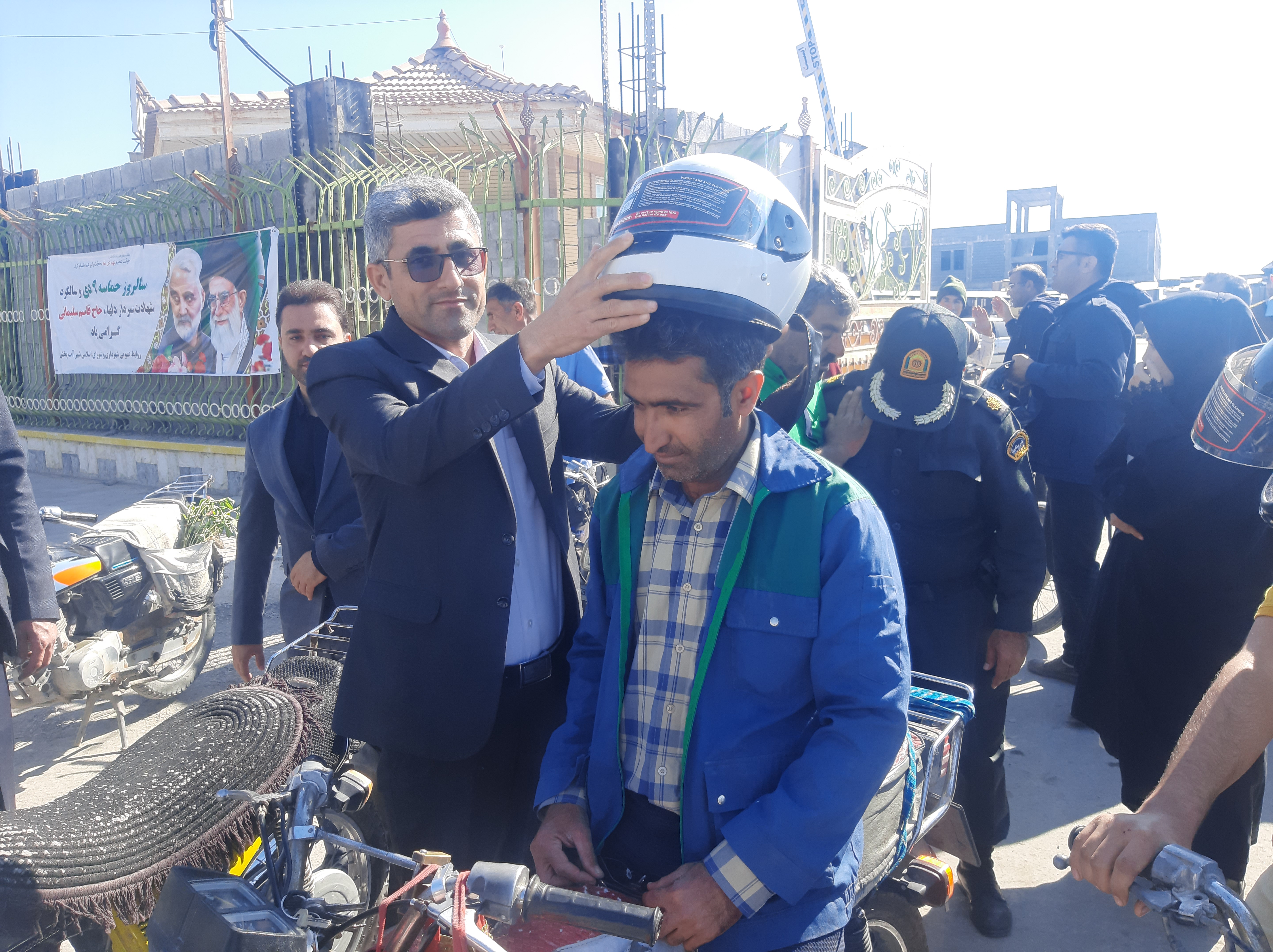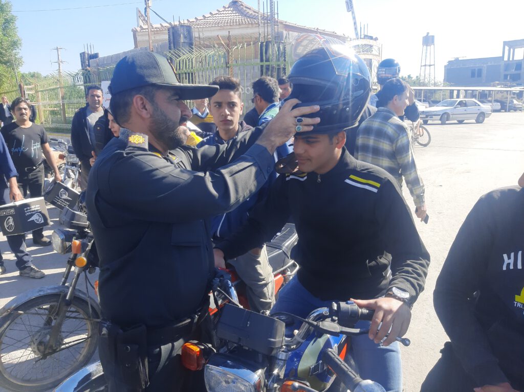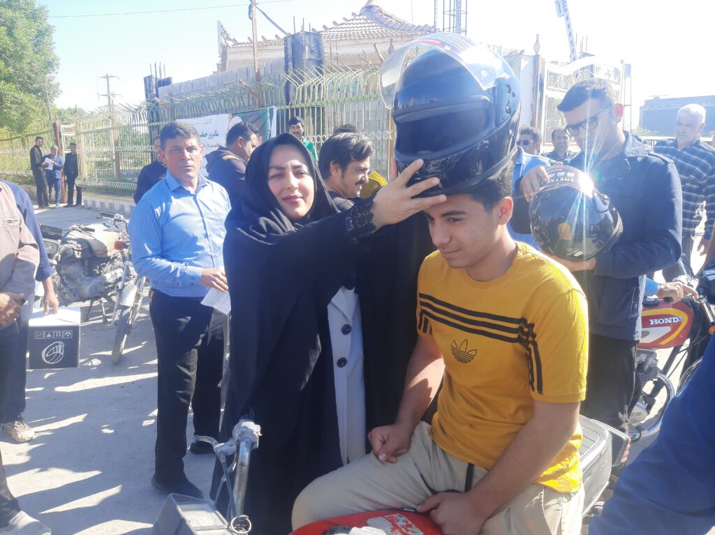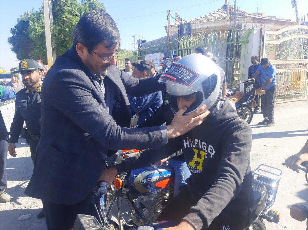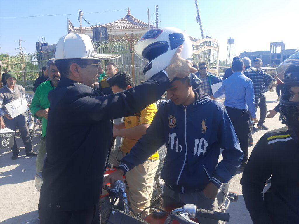 اهدای کلاه ایمنی به موتورسواران توسط شهرداری و شورای اسلامی شهر آب پخش+تصاویر