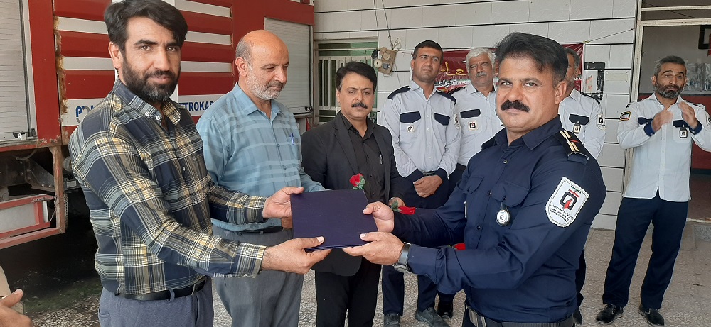 مراسم تجلیل از آتش نشانان شهرداری آب پخش برگزار شد